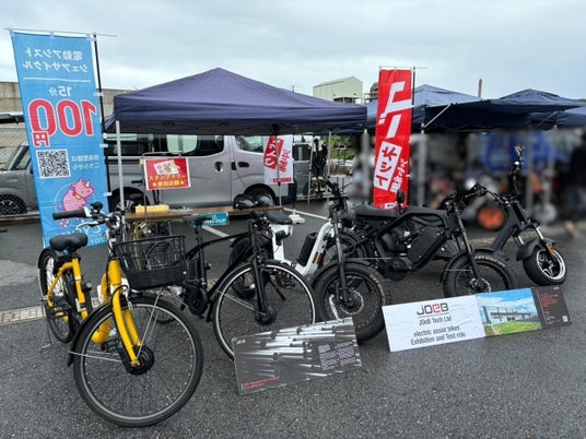 シェアサイクルCYCYにて協業している株式会社プロトソリューションとの共同ブースで、自社製品の電動アシスト自転車と電動バイクを展示・試乗会をおこないました。