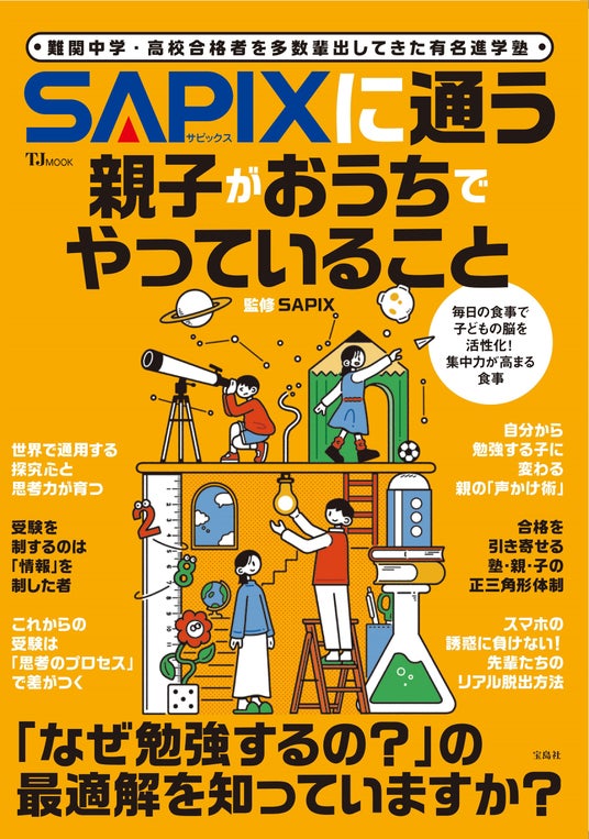 株式会社日本入試センター(本社:東京都渋谷区/代表取締役社長:高宮英郎)が運営する進学塾SAPIXが監修するTJMOOK『SAPIXに通う親子がおうちでやっていること』が、2026年3月30日に株式会社宝島社より刊行されます。