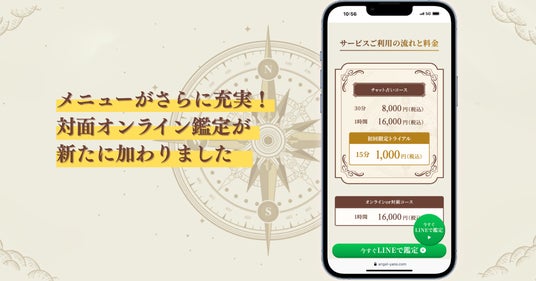 従来のチャット占いに加え、新たにオンラインでの対面鑑定を追加。