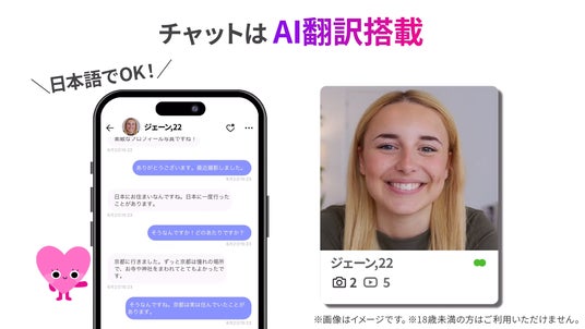 Kisekiとは、オンラインで約80カ国※1のメンバーと出会えるグローバル恋愛マッチングサービスです。日本にいながら北米、ヨーロッパ、アジアなど様々な地域のメンバーとオンラインで繋がり、愛を深めることができます。AI自動翻訳※2が搭載されており、コミュニケーションは日本語でOK、言語の壁はありません。運命の恋を見つける以外にも、オンライン彼氏/彼女を見つけたり、海外の友達を作るなど用途にあわせたご利用が可能です。