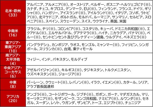 (※)は駐日大使や臨時代理大使ご本人が参加登録いただいた国(32カ国)
