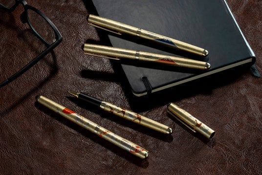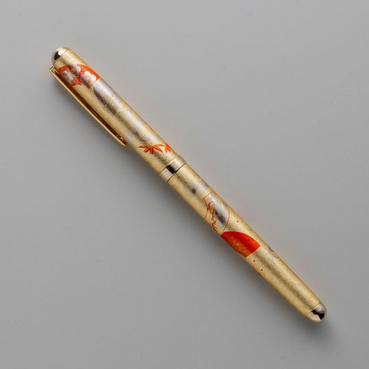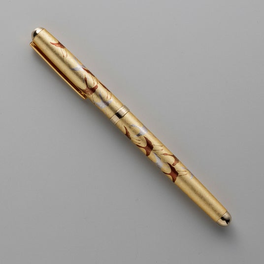 金箔の柔らかな輝きと、蒔絵による前途を祝す縁起物がほどこされた、贅沢な一品です。これまで海外の要人へ贈る品としても選ばれてきたその風格は、リニューアルによってさらなる高みへ。単なる筆記具の枠を超え、手にするたびに日本の伝統的な慶びを感じさせる、芸術品のような佇まいを追求しました。