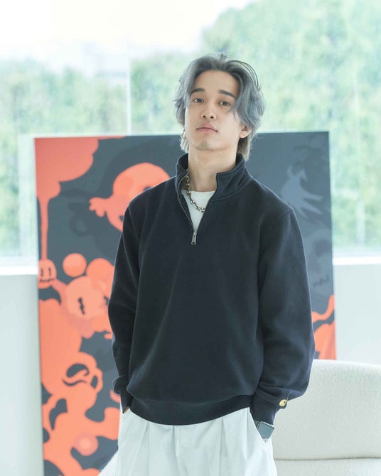 彼は Marc Jacobs、Dr. Martens、mastermind、PEACHES、SEGA、Bentley、 F1ドライバー角田裕毅 など世界的なパートナーと協働し、アートとブランド、伝統と現代を融合させるプロジェクトを展開してきた。絵画、空間デザイン、ブランディングなど多層的な活動を通じて、ブランドの哲学やストーリーに芸術的深みを与えることを得意としている。