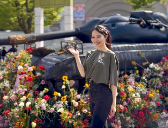 また、当日は当社と関わりのあるMiss Planet Japan 2026 東京代表 宮田理央さんがステージ司会として登壇し、イベントを盛り上げました。会場内では、戦争の象徴である戦車に平和の象徴である花を手向ける参加型の企画にも関わり、来場者とともに環境や平和について改めて考えるきっかけになったと語っています。