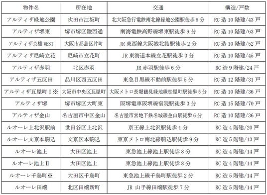 また、前回対象としていたRC造のArtizA(アルティザ)ブランドに加え、壁式RC造のLUORE(ルオーレ)ブランドも対象資産に組み入れることで、より幅広い賃貸住宅ニーズに対応できる商品構成としております。