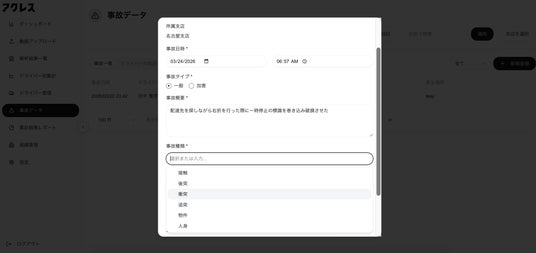 事故データ登録画面