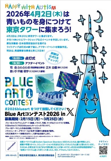 4月2日は国連が定めた世界自閉症啓発デー。NPO法人東京都自閉症協会(理事長:杉山雅治)は、東京タワーで、イベントを開催します。