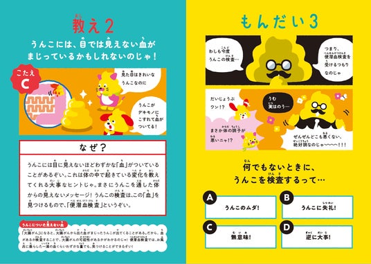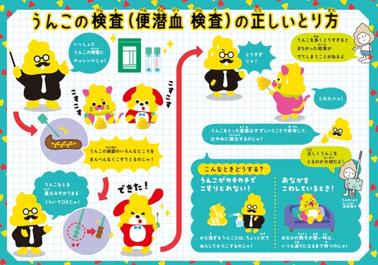 本冊子では、医師監修のもと、うんこドリルならではのユーモアと分かりやすさで解説しており、お子さん自身が楽しみながら学べるだけでなく、「お父さん、お母さん、検査した?」という自然な会話が家庭で生まれることを期待しています。