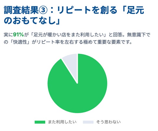 91%が「足元が暖かい店にはまた行きたい」と回答