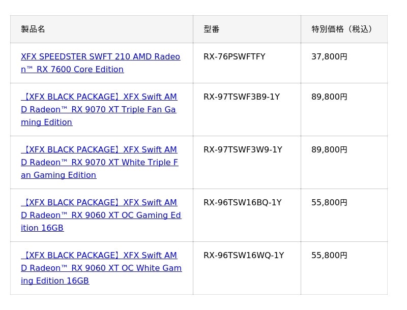 ゴッパ公式ECサイトのリニューアルを記念し、期間限定の特別価格で XFX グラフィックボードを販売いたします。