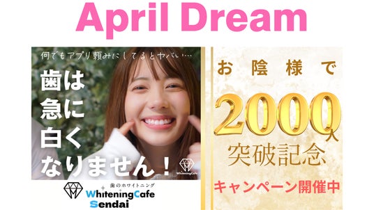 株式会社マムグランドが運営する「ホワイトニングカフェ仙台店(宮城県仙台市青葉区)」は、4月1日を夢を発信する日にしようとするApril Dreamに賛同しています。このプレスリリースは「株式会社マムグランド」の夢です。