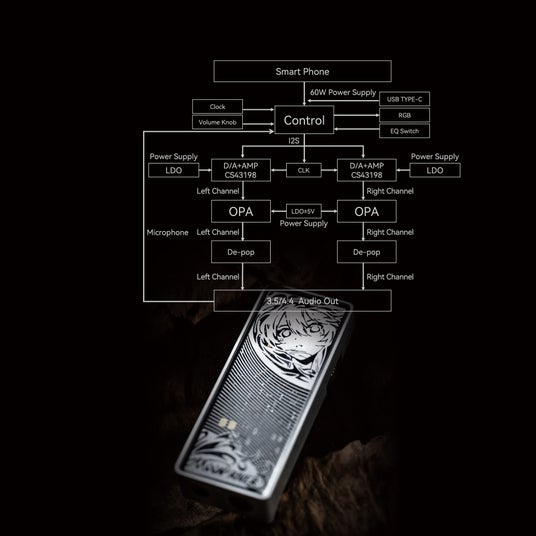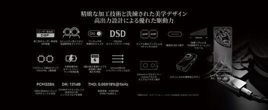 Cirrus Logic製「CS43198」DACチップ2基と独立アンプ2基を搭載し、131dBのダイナミックレンジと0.00018%の超低歪率を達成しました 。5基の独立電源チップにより各回路に個別電力を供給し、極めてクリーンな音質を実現しています。