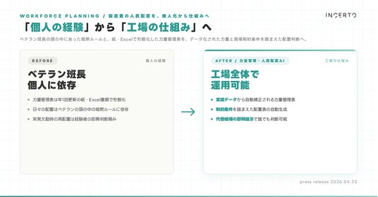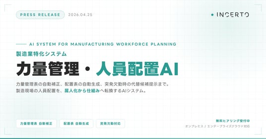Incerto合同会社(本社: 東京都荒川区、代表: 佐藤碧人、https://www.incerto.tech/)は本日、製造業特化の 『力量管理・人員配置AI』 の提供を開始しました。