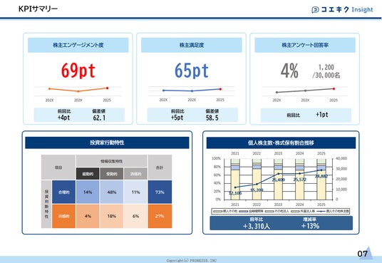 ディスクロージャー・IRを中心としたコーポレートコミュニケーション支援会社である株式会社プロネクサス(以下、当社)は、独自の「株主エンゲージメント度」を測定することで上場会社と個人株主のコミュニケーションの質的向上をはかる新サービス「コエキクInsight」(以下、本サービス)をリリースいたしましたので、お伝えいたします。