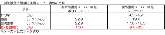 ※以下データは一般的な防護服で使われる素材P-アラミドとの比較試験