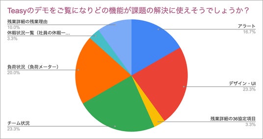 4位に食い込んでいるアラート機能は残業の多い従業員、打刻漏れの従業員などを一覧表示できる機能です。悩み事にあったように「打刻漏れ・申請漏れ」で悩まれている方が多いので、その辺りの管理機能に興味がうかがえる結果となりました。