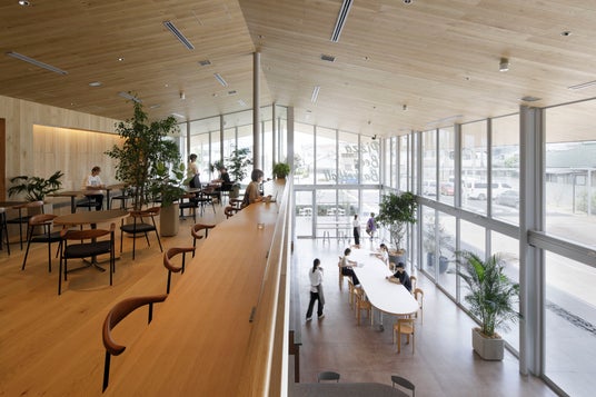 インテリアデザインは、「ダンデライオン・チョコレートファクトリー&カフェ蔵前」や「sequence MIYASHITA PARK」を手がけたPuddleの加藤匡毅氏。日照時間が長く太陽の光を強く感じる深谷の風土や、人とのコミュニケーションを生み出すことを大切に作られました。天井までガラス張りの吹き抜けから心地良い光が店内に降り注ぐ、とても開放的な空間です。