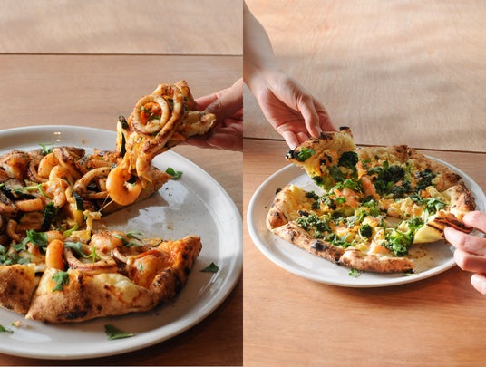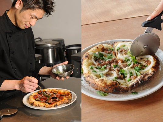 併設レストラン『3on3 Fukaya』のメインメニューは、ピザ窯を備えた店内で焼き上げる本格ピザ。深谷ねぎなど、野菜の生産がさかんな“関東の台所”と言われる深谷の野菜をふんだんに使ったヘルシーなピザに加え、新作ピザは、サルシッチャ・サラミを使ったピリ辛ピザに、魚介の旨味が溢れるスパイシーなシーフードピザ、そして肉味噌と新玉ねぎの甘味が広がる新食感ピザ、濃厚な特製タルタルソースを使ったエビマヨ風ピザなど、シェフのアイデアが光るオリジナルのピザが登場。