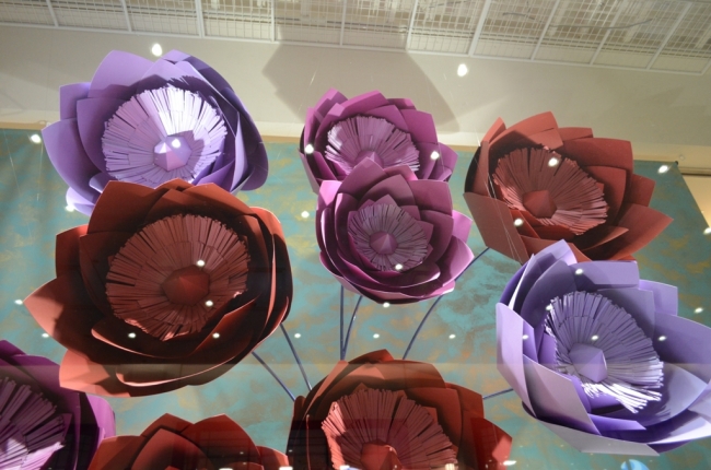 “劇場型百貨店”というストアコンセプトのもと、阪急うめだ本店の1階ウインドーでは日本の風物詩や季節の訪れを“アートによる驚きや発見”で表現。今回は、秋を先取りし、華やかな気分になるアート。ファッションテーマ “ゴージャス”を英国のアーティスト ゾイ・ブラッドリー氏によるペーパースカルプチャー(紙彫刻)と呼ばれる技法で、様々な色や形の花々が豪華に咲き誇りました。全7面のウインドーの中でも、注目はおよそ1,400個もの スワロフスキー(R)・クリスタルを使用することで、より煌きを放つビッグドレス。紙とスワロフスキー(R)・クリスタルが融合した輝きとクチュール感満載の華やかな世界をご紹介いたします。