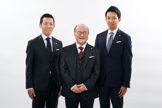 左:弊社代表 福留正明 中央:俳優 角野卓造さん 右:弊社代表 荒巻善宏