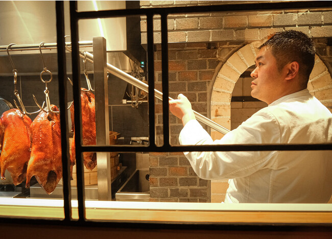 3階の「シェフズテーブル」は、”シグネチャー北京ダック”や自慢の香港式叉焼などをシェフが世界で一つだけの『文菜華オリジナル北京ダック煉瓦窯』で焼き上げる厨房を眺めながら、賑やかに円卓を囲み、食事を楽しめるお部屋です。