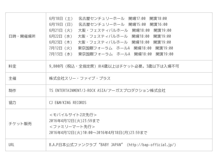 詳しくは、B.A.P日本公式ファンクラブ“BABY JAPAN”(http://bap-official.jp/)でご確認ください。