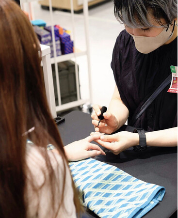 そこで、ジェルネイルの専門知識を身に着けた専属スタッフによって商品の正しい使い方をお伝えし、スムーズにセルフジェルネイルをスタートしてもらいたいと思い、去年6月より「ネイルスタンド」のサービスを大阪(阪神百貨店2F)にてオープンしました。同年12月には広島(LECT2F)でもオープンしています。