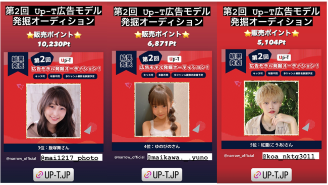 オリジナルTシャツのUp-T!第2回広告モデル発掘オーディション結果発表!