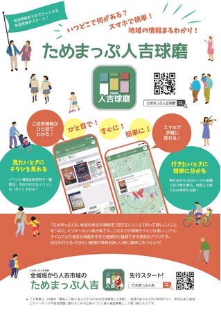《ためま株式会社》は、地域参加情報基盤の実装実証企業として「内閣府 関係人口創出・拡大のための対流促進事業」の採択を受け、2023年2月1日より、人吉市、熊本県球磨地域振興局、JICA熊本らと連携し、人吉球磨地域内で行われる市民活動などの催事、行事等の情報を通じて、地域内外のつながりを強めていく取り組みを開始いたします。熊本県人吉球磨地域のエリアで、地域活動情報を電子化するWebアプリサービス「ためまっぷ人吉球磨」を公開いたしました。