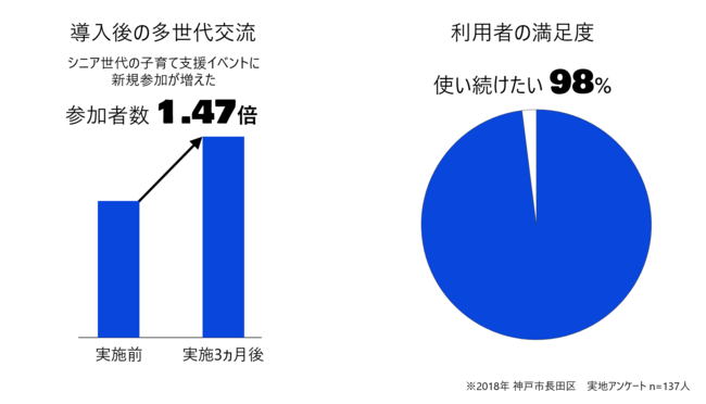 HPやSNS、Chatツールでは得られなかったこども食堂への新規参加があり、育児世代の母親や児童委員さんからのお礼、シニアのつながりも復活したという声をいただくようになり、総利用者数は64万人、25地域団体を越えています。