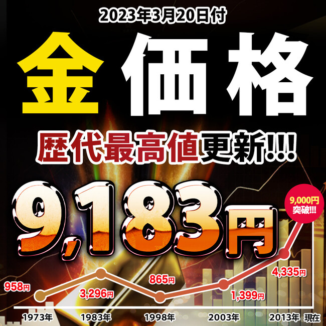 3月20日付の金価格が【9,183円/1g】を記録し、3日連続となる国内の史上最高値を更新しました。