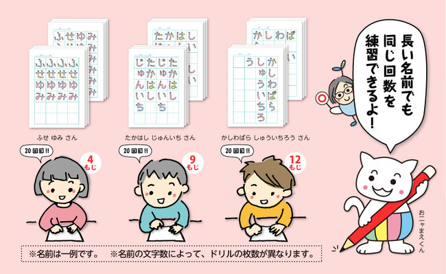 あの子・その子の名前がそのままドリルになる、名前練習専用のオーダーメードドリルです。