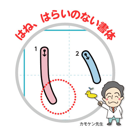 文字を書き始めたばかりの子どもに、初めから小さな字で書かせたり、はね・はらいを書かせると、結果的に読みにくい文字になってしまうことがよくあります。まずは誰が見ても読める文字を書けることが大切なので、無理にはね・はらいはせずに、線の終わりはぴったり止めるように教えていきます。運筆力を高めるためにも、ゆっくり書くことや、線の終わりはしっかり止まることを意識するのが重要になります。