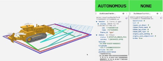 スラグ破砕作業中、ブルドーザーは固化または破砕された凹凸のあるスラグ上での作業となるため、本技術開発では、ブルドーザーに取り付けたGNSS※2、IMU※3、傾斜計※4などのセンサー情報から、機体やリッパーの位置、姿勢、状態を高精度かつリアルタイムに推定する技術を活用し、様々に変化する路面状況にも柔軟に対応する自動制御システムを開発いたしました。