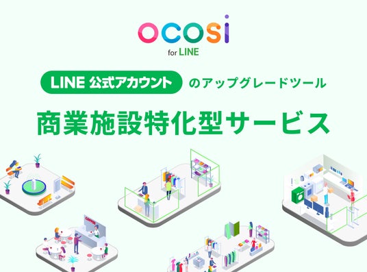 アプリDL不要でLINEから簡単アクセスの「ocosi for LINE」。商業施設の「できたらいいな」を実現するLINE販促ツールで、店舗と顧客の新しい関係構築に貢献します