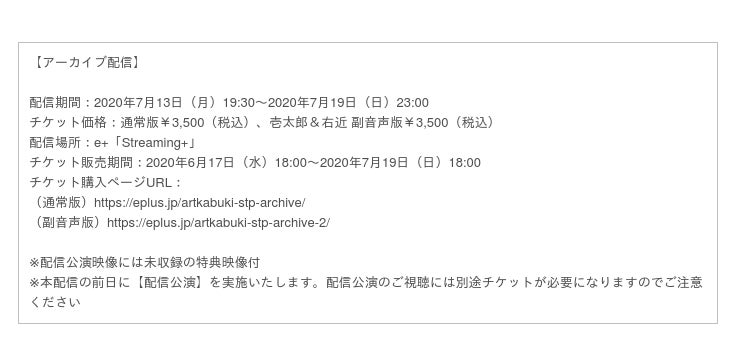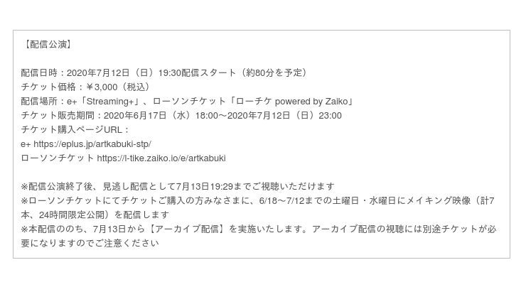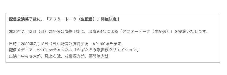 配信公演にて、今週末7月12日(日) 19:30開演