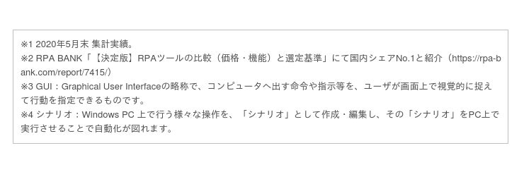 各業界の企業へのヒアリングを通して、様々な業界に特化したRPAシナリオ、ソリューションを提供する予定です。これらを用いることでスムーズなRPA導入と導入効果の最大化を目指します。