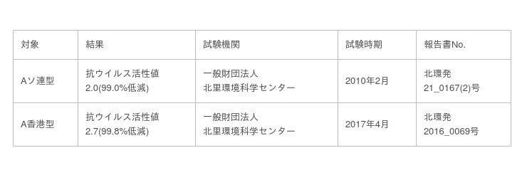 1.新型コロナウイルス低減効果確認に関する試験内容および結果