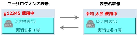 これまでOnRPAでは、ロボPCの利用者表示をADのユーザログオン名で表示していましたが、このユーザログオン名には社員番号などが利用される場合が多く、一見して誰なのか認識できない場合もありました。