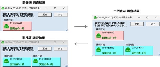 OnRPAを利用してロボPCのステータス確認を行う場合には、開発版と実行版を別々に操作する必要がありましたが、Ver2.0では一括して利用状況の確認ができるようになります。