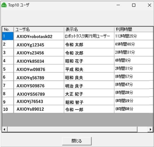 ・ロボPCの利用率/Top10ユーザ表示