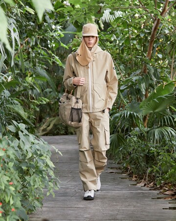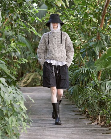 日の光が差し込む中、水面に浮かぶように配置されたアイコニックなラバーブーツのディスプレイや、生物多様性の楽園と共生する春夏コレクションのアイテムをまとったルックを発見しながら、エキゾチックな植物が生い茂る小道を進みます。世界観に没入するイマーシブなプレゼンテーションで、AIGLEのインスピレーションルーツである自然を投影したコレクションを是非ご覧ください。