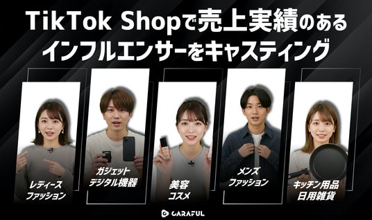 CARAFUL株式会社(本社:東京都渋谷区、代表取締役:松村淳平、以下CARAFUL)は、TikTok Shopで実際に売上実績のあるインフルエンサーを、企業の商品プロモーションにキャスティングできる新サービスを開始いたします。
