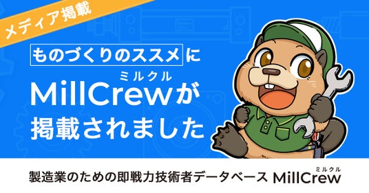 製造業に特化した即戦力技術者のスカウトサービスMillCrewが、国内トップクラスの製造系技術「ものづくりのススメ」に掲載されました。