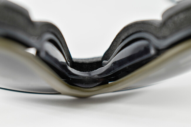 ガスケット本体にデザインされた複数の突起が、サングラスフレームとの間に適度な隙間と空気循環を生み、