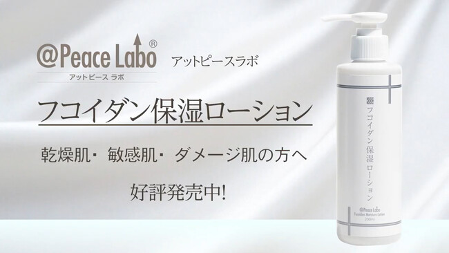 2013年発売以来、多くの肌の悩みがある方々に「これ無しでは生きていけない」という喜びの声をいただいている、12月で10周年目に入る「アットピースラボ フコイダン保湿ローション」は、「保湿の持続力」に特化した「超ダメージ肌」「乾燥肌」「敏感肌」用保湿ローションです。