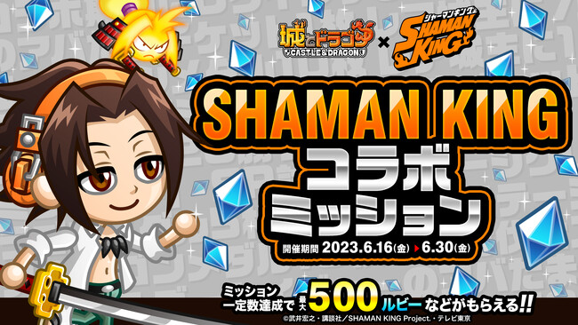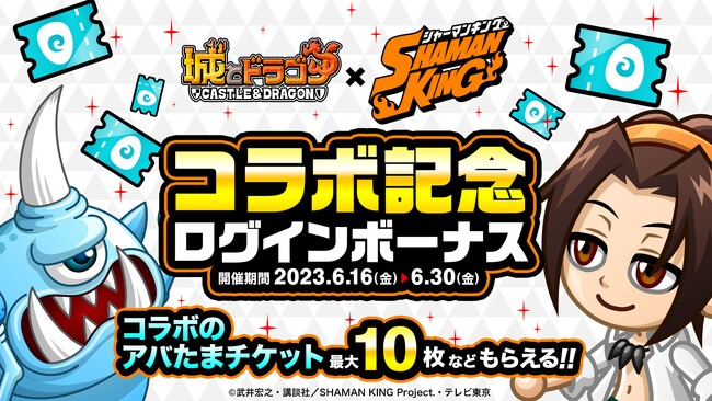 株式会社アソビズム(本社:東京都千代田区、代表取締役:大手智之)は、App Store・Google Playにて好評配信中の『城とドラゴン』で、TVアニメ『SHAMAN KING』との復刻コラボイベントを、2023年6月16日(金)より開催いたします。