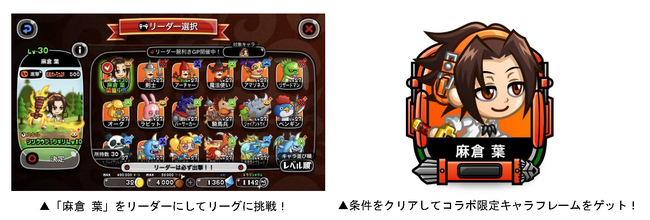 コラボ限定キャラ「麻倉 葉」をリーダーにしてリーグに挑む「リーダー腕利きGP」を開催いたします。バトルに勝利してより多くの「キャラフレP」を獲得したランキング上位者や条件を達成した方には、コラボ限定「キャラフレーム」が贈られます。