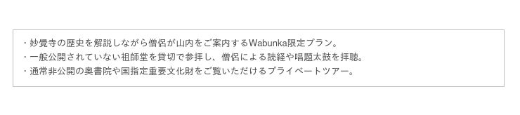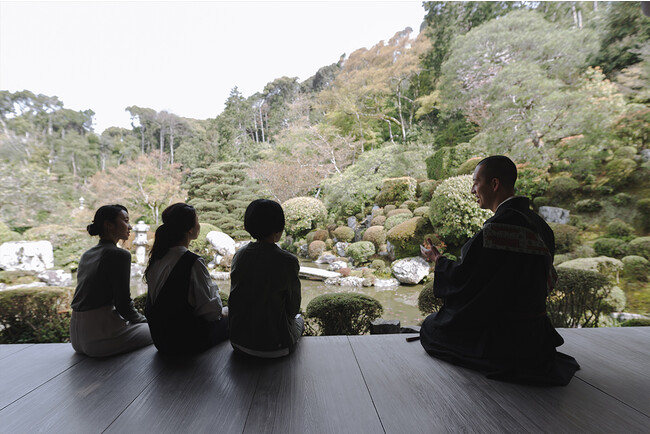 本体験は、少人数で坐禅と法話、庭園の自由拝観を楽しめるWabunka限定プラン。特別な場所をゆっくりと贅沢に堪能できます。通常拝観時間外の開門により実現しました。