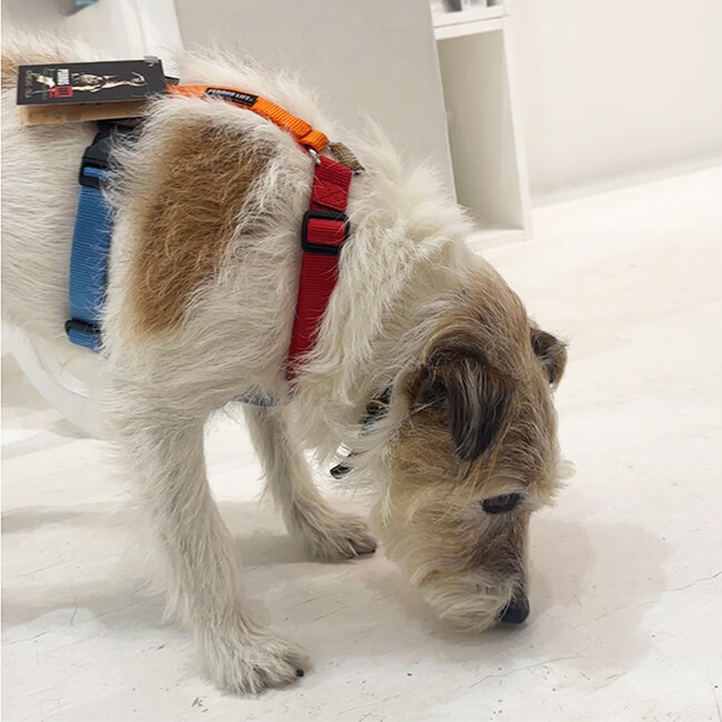 犬の体に優しい設計で、首や気管、肌への摩擦、脇の食い込み、その他痛みを与えにくいのはもちろんのこと、首回りに留め具があることで、着衣の際、頭を通すことが苦手な犬たちが恐怖心を抑えながら装着することが可能です。マルチカラーのハーネスで、毎日のお散歩がより一層特別なものに。鮮やかな色合いが愛犬の個性を引き立て、あなたとの絆を深めます。